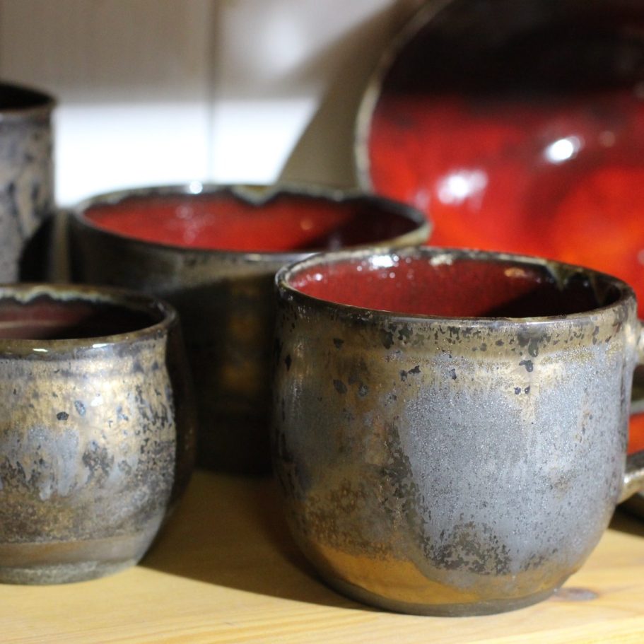 Vor 25 Jahren haben wir in der Carstennstr. 66 die Töpferwerkstatt eingerichtet. Seitdem produzieren wir in kleinem Rahmen (neben weiteren Tätigkeiten) Geschirr und andere Keramik und bieten Töpferkurse an.